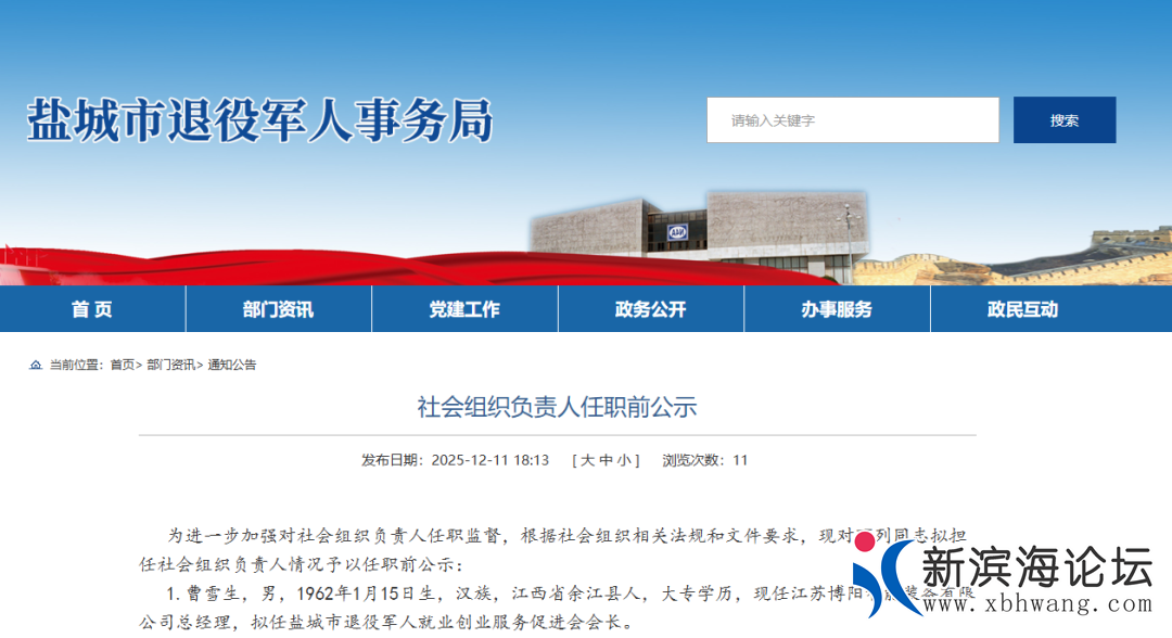 盐城15名同志任职前公示