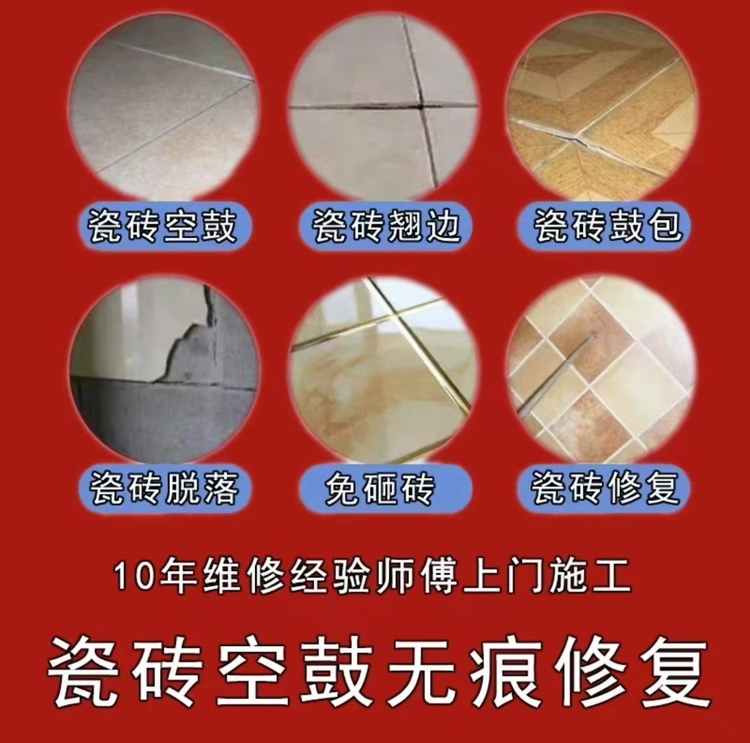 瓷砖空鼓免砸砖免砸墙修复,瓷砖变形松动脱落翘边微创维修!热线:17882178208 卫生间瓷砖空鼓、厨房瓷砖空鼓、新楼盘外墙空鼓、高层外墙修复、客厅瓷砖空鼓、房屋内部瓷砖空鼓、酒店瓷砖空鼓、公寓瓷砖空鼓、工厂办公室瓷砖空鼓、新老房屋瓷砖空鼓、墙面瓷砖空鼓、露台瓷砖空鼓脱落、全屋瓷砖空鼓治理、地面瓷砖空鼓、卫浴间空鼓、游泳池空鼓、蓄水池瓷砖空鼓、电梯间瓷砖空鼓治理、屋面空鼓修复、商场瓷砖修复、酒店瓷砖修复、室内厨卫间瓷砖修复、浴池瓷砖空鼓修复、外墙面瓷砖空鼓、面板瓷砖脱落、空鼓修复瓷砖空鼓修复、专业上门维修卫生间瓷砖空鼓气泡、阳台瓷砖修复、厨房瓷砖修复 楼面瓷砖修复、商场瓷砖修复自建房、小区、家庭、别墅、办公室、写字楼、地面、厨房、卫生间、墙面、楼顶、以及各种因瓷砖空鼓引发的气泡脱落等问题出现空鼓情况请立即联系我们、门将安排师傅上门进行现场勘测修补联系方式17882178208刘师傅