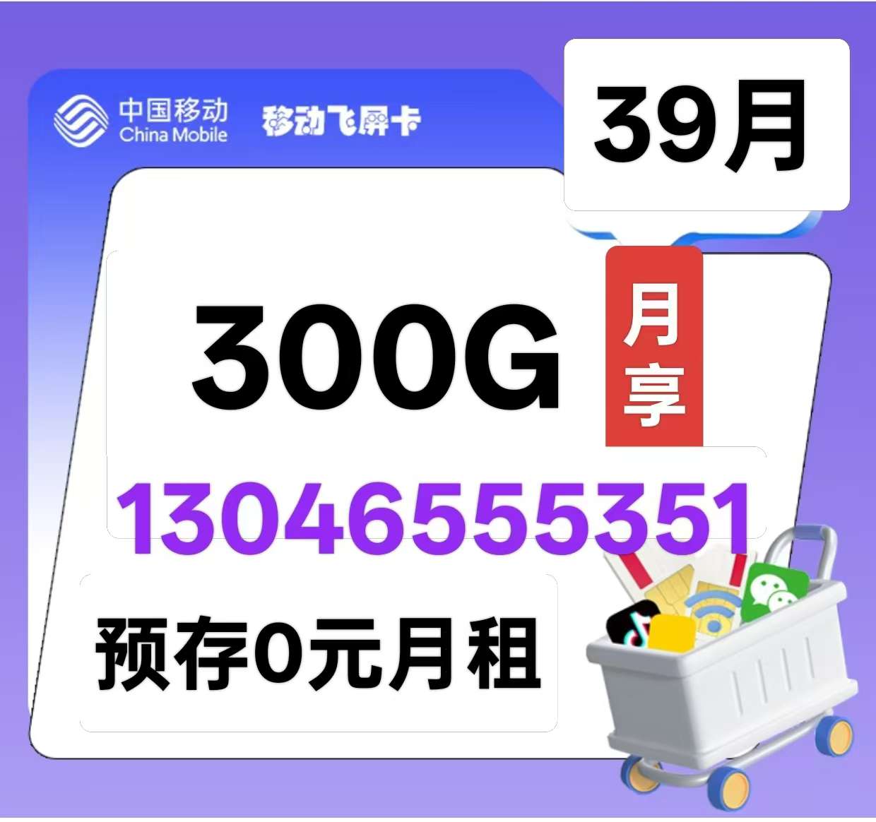 39元 自己激活 300G国内通用流量 ( 0月租,无首充,话费自己充 )办卡热线13046555351